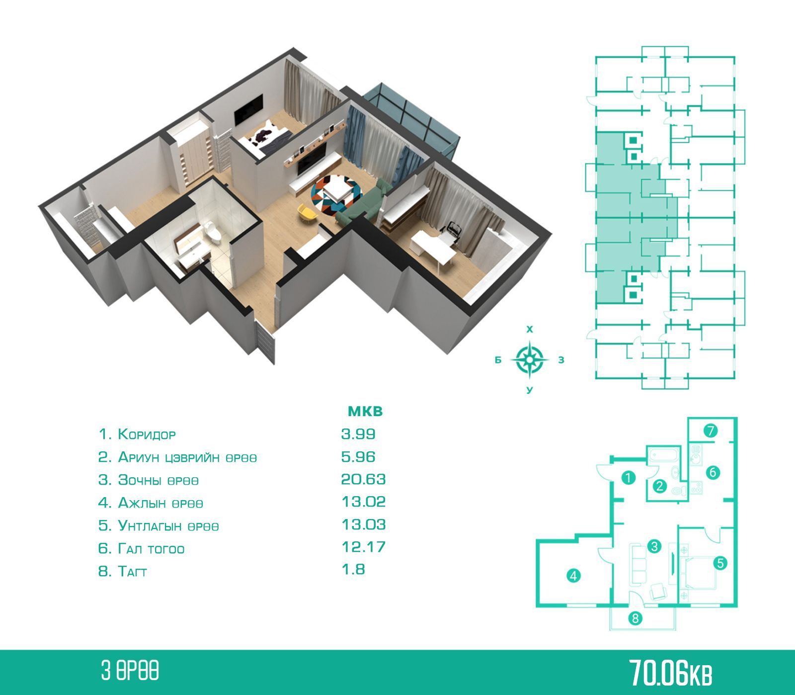 70.6м² - 3 өрөө