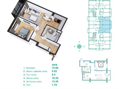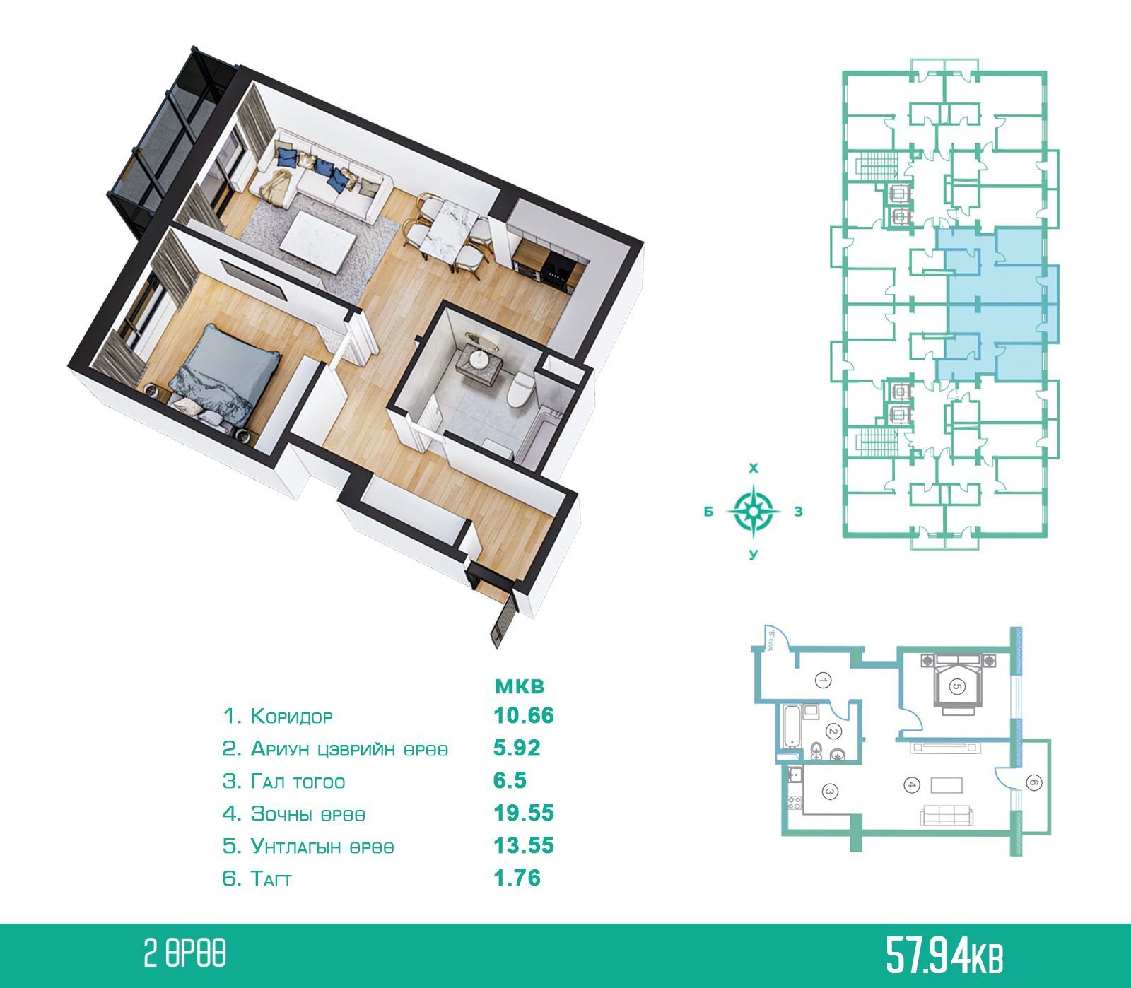 | 3,4 | Зочны өрөө, гал тогоо | 28.16м² |